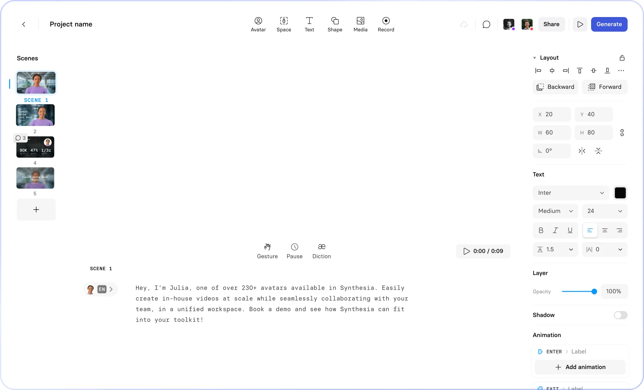 Create studio-quality videos with AI avatars and voiceovers in 140+ languages. It’s as easy as making a slide deck.